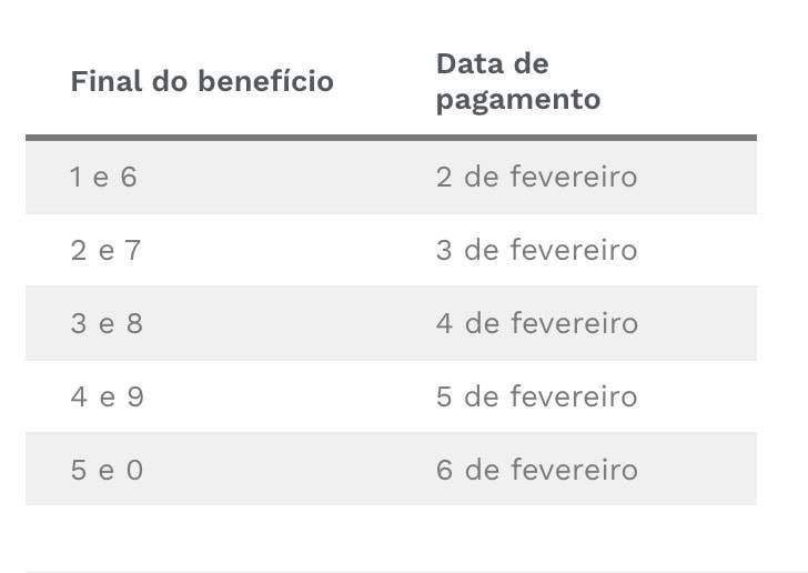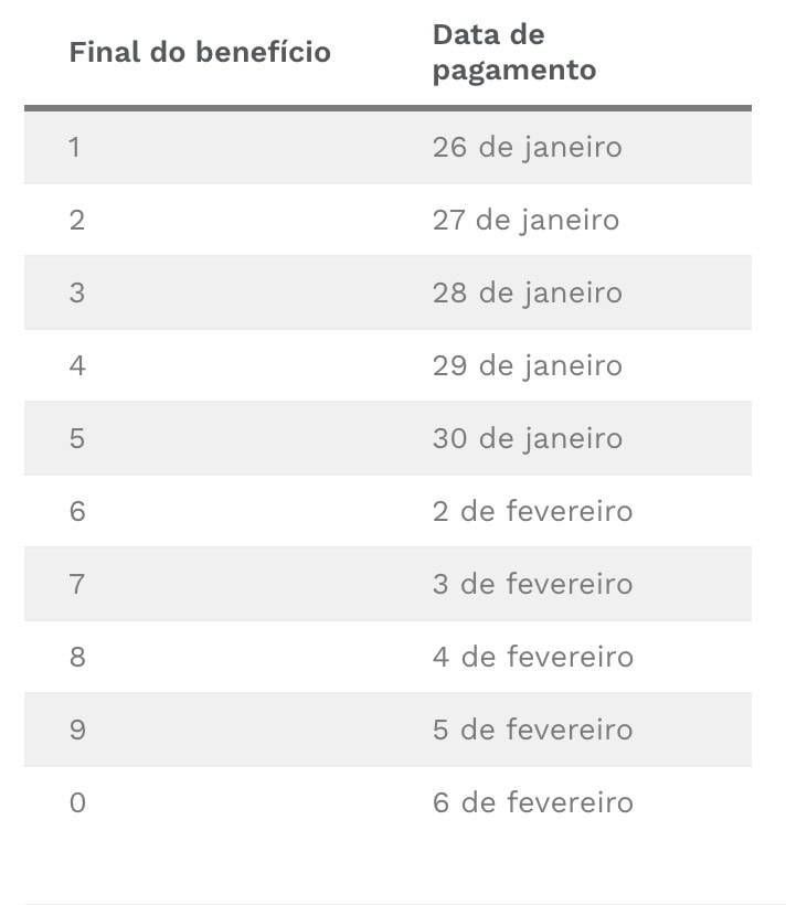 Pagamentos de janeiro de 2026 - até um salário-mínimo