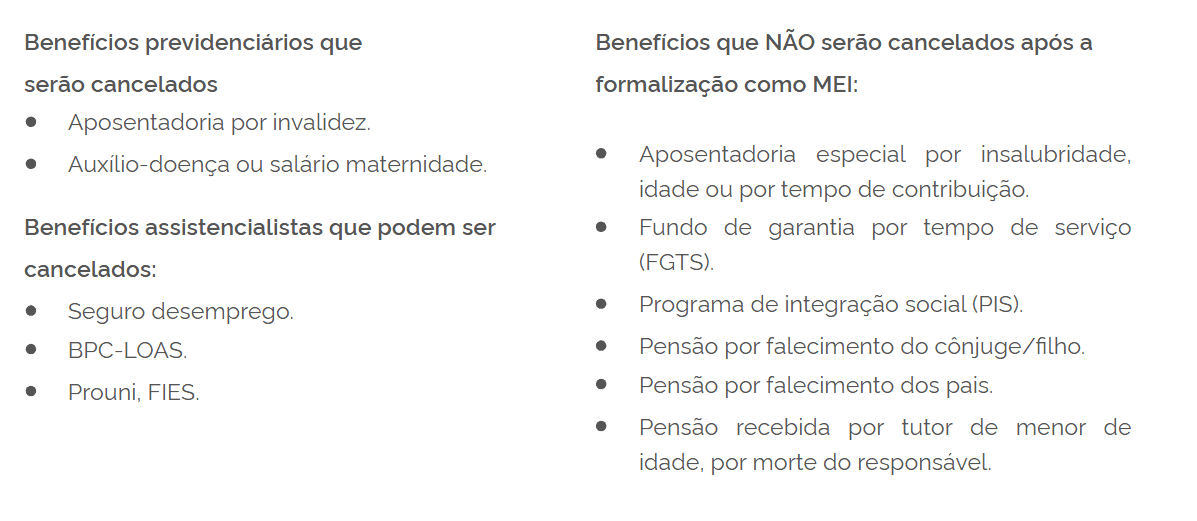 Ao manter os pagamentos mensais do Documento de Arrecadação do Simples Nacional (DAS) atualizados, o MEI usufrui de diversos benefícios e garantias previdenciárias, além de vantagens empresariais específicas, conforme destacado a seguir: